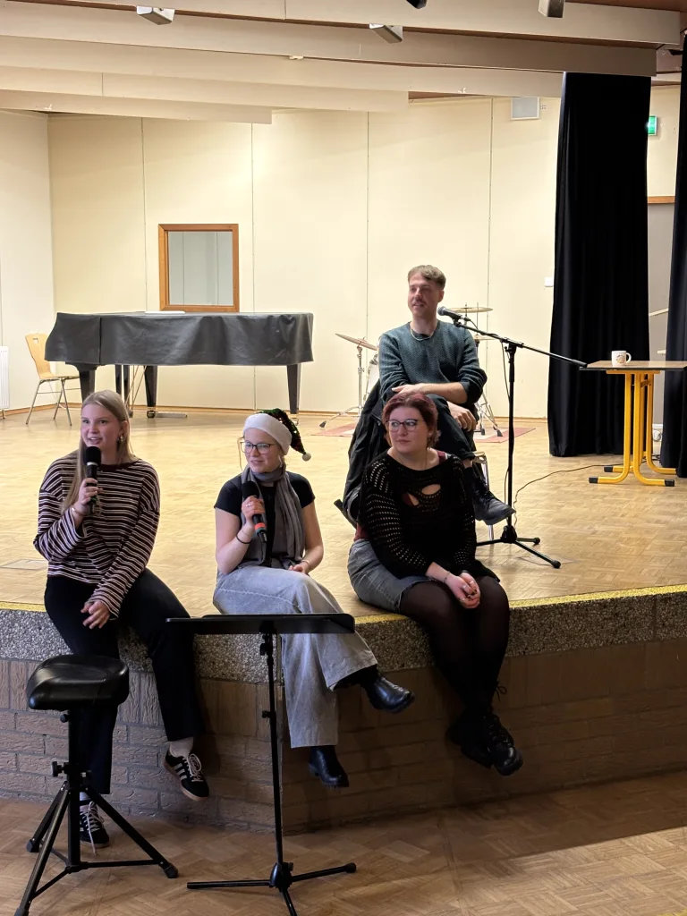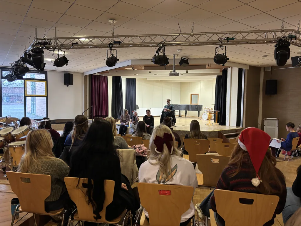 Am letzten Schultag vor den Weihnachtsferien konnte der 13. Jahrgang ein ganz besonderes Ereignis erleben: Der Schriftsteller Sven Pfizenmaier kam aus Berlin, um über seinen Roman „Draußen feiern die Leute“ zu sprechen. Dabei standen die Fragen der Schülerinnen und Schüler im Vordergrund, die ein breites Spektrum abdeckten. Es ging um persönliche Einflüsse, das Leben als Künstler, aber auch Intentionen und Vorgehensweise beim Schreiben, sodass am Ende für alle etwas Interessantes dabei gewesen ist.