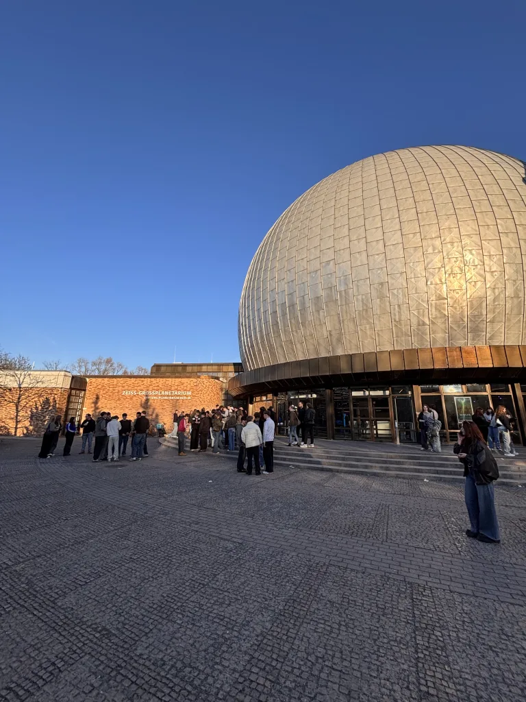 Schon am ersten Tag unserer Klassenfahrt, dem Mittwoch, haben wir viele Seiten Berlins kennenlernen dürfen. Nach einer langen Busfahrt kamen wir nachmittags endlich bei unserer Unterkunft an und konnten die Zimmer direkt beziehen. Nach einem kurzen Ankommen ging es schon direkt weiter zum Planetarium. Dort lernten wir in der „Sternstunde“ anhand des aktuellen Berliner Nachthimmels nicht nur die Sternbilder und die Planeten unseres Sonnensystems kennen, sondern wagten auch einen Blick über die Milchstraße hinaus bis hin zu unerforschten Galaxien. Besonders spannend fanden wir es, zu lernen, auf welche Art schon die Wikinger die Himmelsrichtungen bestimmen konnten und wie einfach das ist. Anschließend hatten wir Zeit die Stadt zu erkunden und etwas zu essen, bevor es im Programm mit der Improshow „Ick & Berlin“ weiterging. Bei dieser Form von Theater entwickeln Schauspieler Szenen spontan, ohne Skript und in unserem Fall konnten wir sogar mitwirken. Die Schauspieler befragten uns nach für Berlin typischen Personen, Gefühlen, Gegenständen oder Orten, um Charaktere, Atmosphären und Räume zu gestalten. Bei der Show kamen dadurch witzige und absurde Szenen heraus, die immer in Bezug auf diese Vorschläge waren und uns somit in das Schauspiel eingebunden haben. Schließlich beendete jeder den Abend individuell, z.B. durch weiteres Erkunden der Stadt.