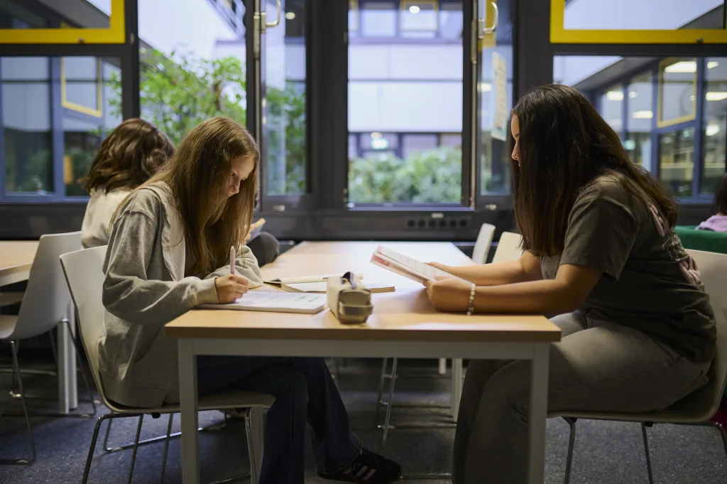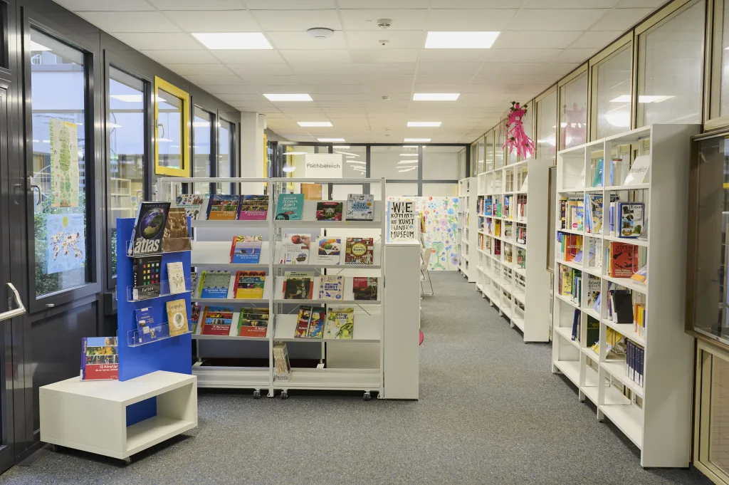 Die Bibliothek ist in den Pausen und Freistunden ein beliebter Ort für Schülerinnen und Schüler. Darüber hinaus ist sie auch während des Dalton-Unterrichts geöffnet, damit Schülerinnen und Schüler darin arbeiten können.